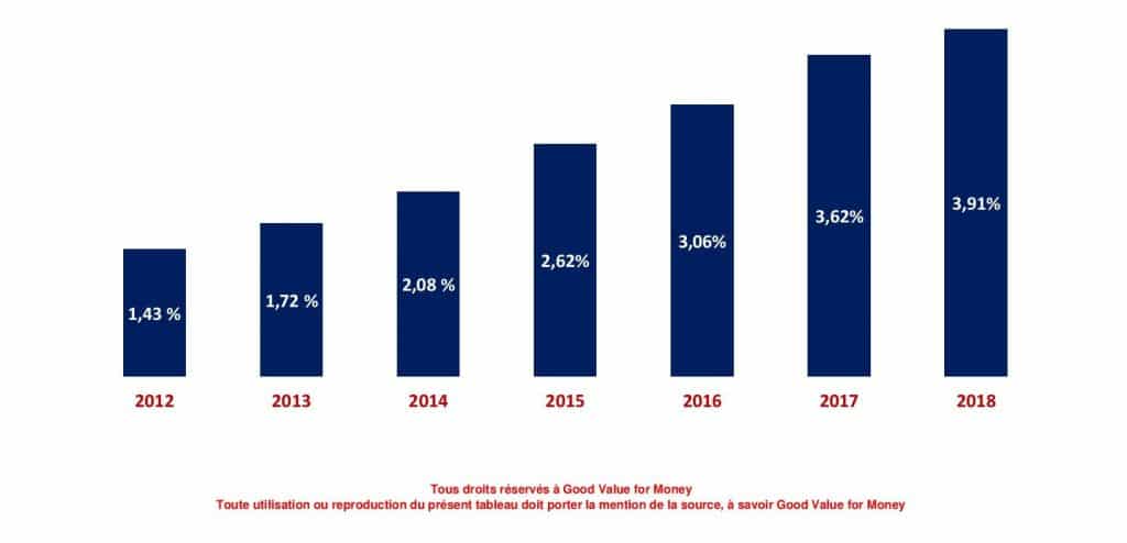En 2012, le niveau de réserves s’élevait à 1,43 % de l’encours géré contre 3,91 % en 2018. Voyez plutôt :