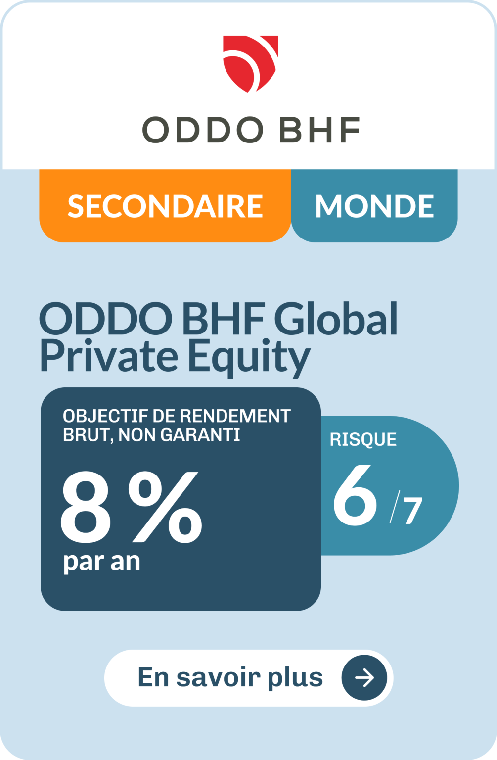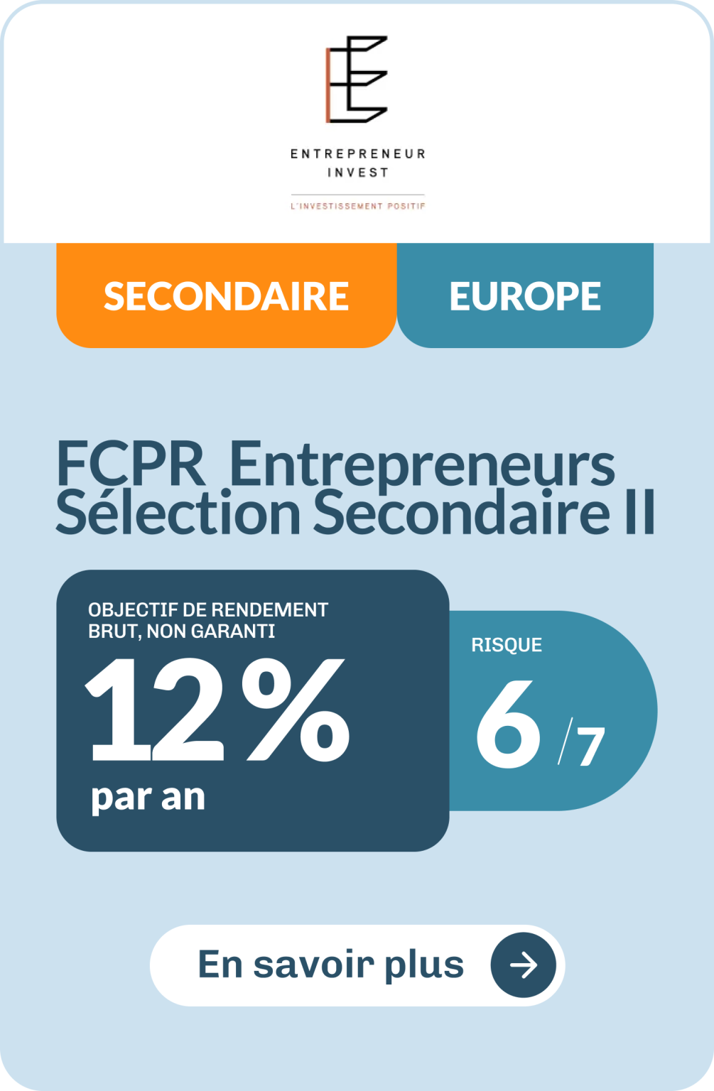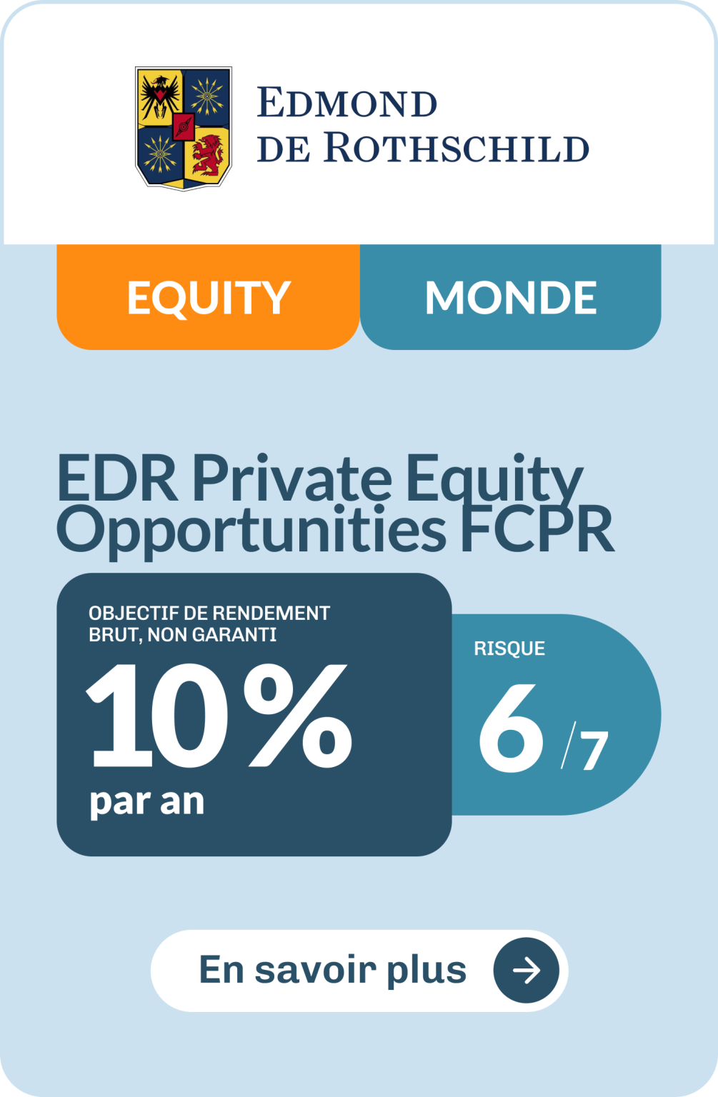 A savoir : L’investissement dans des fonds de Private Equity doit être considéré sur le long terme, la durée de détention conseillée est de 8 à 10 ans. Ni le capital ni la performance ne sont garantis. Le capital investissement peut s’avérer risqué. En contrepartie de cette prise de risque, les performances peuvent être avantageuses. Prenez connaissance des facteurs de risques et des frais avant toute souscription.