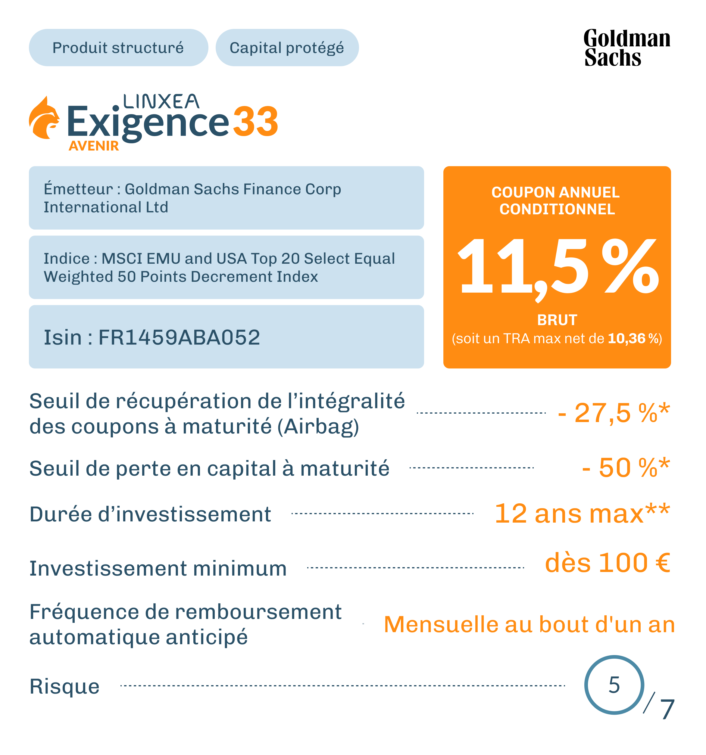 Accueil > Épargne > Nos produits structurés > Exigence 33 Avenir